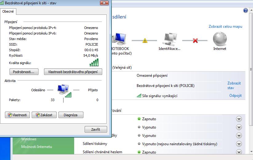 Notebook ted wifi najde(ten modem) ale problem s pripojenim viz foto 2