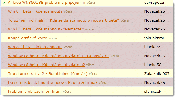 Tak to máš pravdu, hošíku! Třeba já jsem ten typický příklad. A proto mám PC Poradnu mezi oblíbenými stránkami, neb co mě paměť sahá, ještě se nestalo, že by nějaký můj dotaz zapadl, či se na něj nesnažil někdo odpovědět, nebo poradit a to jsem prosím lama jak vyšitá. Třeba takovej kmochna, nebo karel by měli mít svatozář.