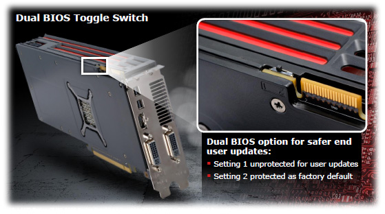 "...Celou věc na kartách s Caymanem značně usnadňuje přítomnost dvou BIOSů a přepínač, který vám v případě, že se něco nepovede, umožní bezpečně nastartovat z druhého (záložního) BIOSu. Potom můžete nepovedený flash napravit."