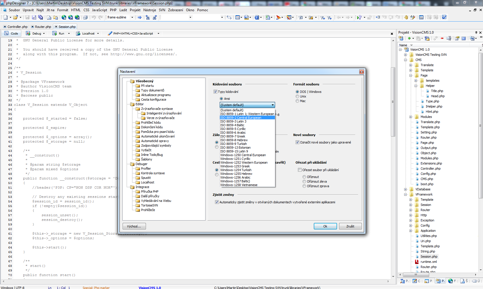 Každopádně PhpDesigner samozřejmě ISO podporuje, jenže spadá pod ANSI a jeho přesnou specifikaci nastavíte v nastavení viz obrázek.