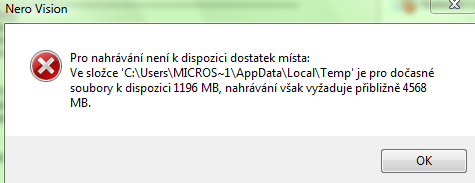 chci si vypálit dvd a ukazuje mi to nějakou tabulku a je tam napsané umístěni C:úusers/app data atd......
