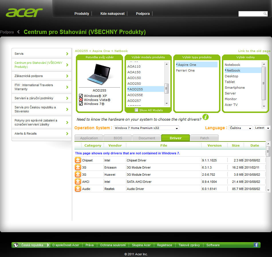 Proč přesnou adresu? To je problém otevřít stránky Aceru a pětkrát kliknout...?