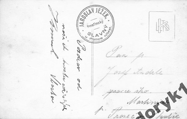 Zezadu pohlednice je razítko hospody, což je sice super, ale je tam jenom lokalita a jméno majitele/hospodského. Nic o názvu...
