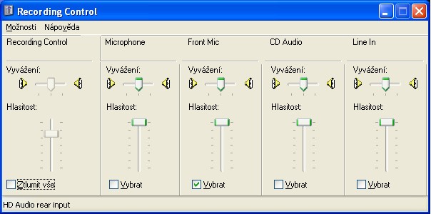 Nastavení mikrofonu