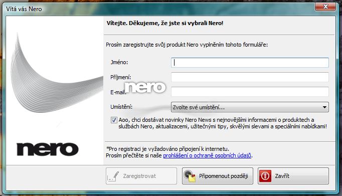 Dobrý den, vždy při oteření např. Nero Vision v Neru 10 se zobrazí tato tabulka, zaregistrování nefunguje. Jak ji vypnout děkuji za odpověď. Na starém počítači tato verze fungovala bez problému. Prosím poraďte.