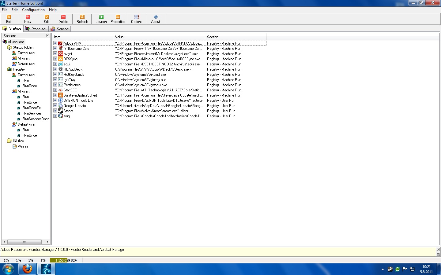 k čemu máš: google notifier, google update, java update scheduler, office bcssync, adobe arm? proč se ptáš druhých, jestli tyto nesmysly používáš?