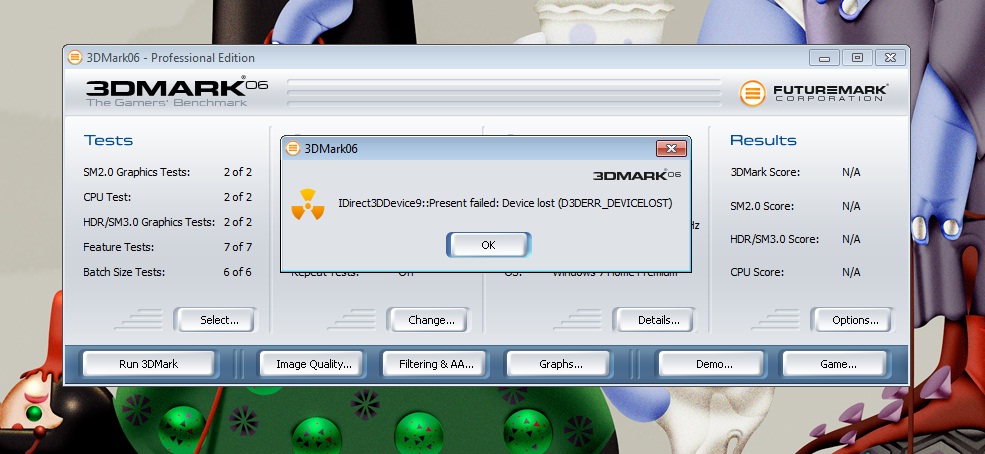 "Idirect3D Device9 Present Failed Device Lost" To co píše 3DMark je asi následek chyby v ovladačích.…