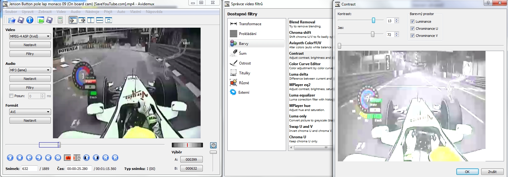 Zesvětlit video bez rekomprese stejně nejspíš nepůjde. Zkuste ten Avidemux, na video třeba XVID, zvuk mp3 a ve Filtrech videa si pohrajte s kontrastem.Při ukládání souboru s videem nezapomeňte dopsat příponu .avi. 1.jpg 493.77 KiB 1-small.jpg 65.46 KiB