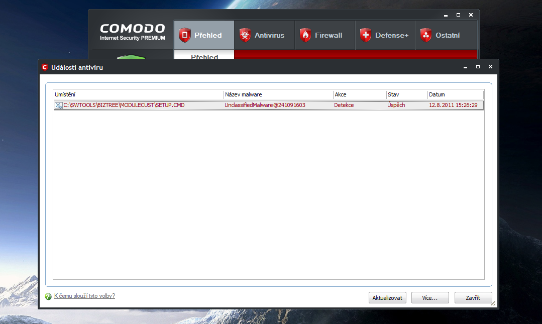 na novém notebooku jsem si nainstaloval Comodo a hned mi našlo malware. Přitom se mi to nezdá, protože jsem se skoro nikde na internetu nepohyboval - hlavně ne na pochybných stránkách. Google tento malware nezná, takže předpokládám, že se jedná o nějakou aplikaci, která byla přímo v notebooku a není nebezpečná, ale raději se zde ptám. Co myslíte, jde o malware nebo ne?