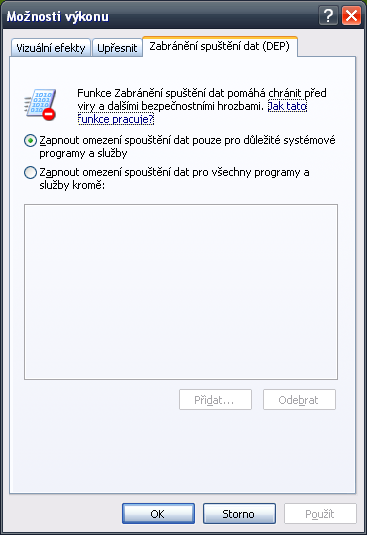 Ano a je to spravne (pre XP od SP2 vyssie). Ked to /noexecute=OptIn zmenis na /noexecute=AlwaysOff t…