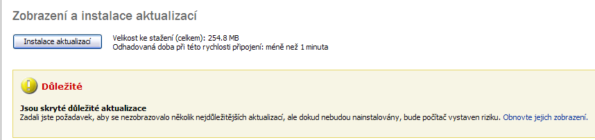 Vyhledal jsem aktualizace, sice mi to pořád píše cosi, že mám skryté, ale nevím co to je... Nainstal…