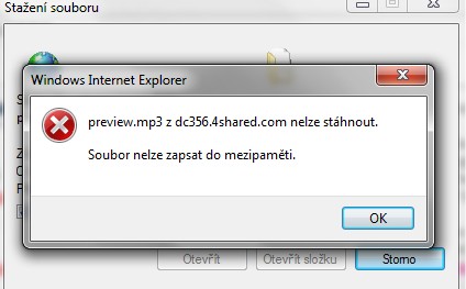 Ahojky, kdekoliv chci stáhnout hudbu,napíše mi to "soubor nelze zapsat do mezipaměti" .Nikdy jsem s tím problém neměla :( Ale už asi 6dnů mi to píše tohle. :( Nevíte co by s tím mohlo být,prosím? :) Předem díky!!!