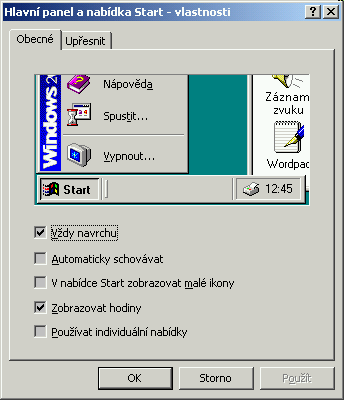 Ano pravym vlastnosti/aut. skryvat hlavny panel (XP)