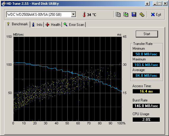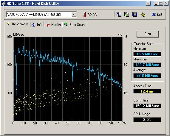 Nezáleží na tom, jestli hraju hry, programuji nebo surfuji po internetu, 2x až 3x denně systém zatuhne a nejde dělat nic. Test SUPERAntiSpyware negativní, MemTest 7 hodin v kuse v pořádku, hodnoty SMART u obou disků OK. Ale zarazila mě podoba křivky rychlosti čtení u toho 750GB: