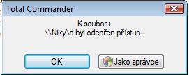 Dobrý den. Mám dvě PC která jsou napojená přes Adsl router na internet. Internet běhá na obou PC. Chtěl jsem sdílet soubory dcery PC (Win7), a mým PC (Win Vista). Od dcery k sobě se dostanu, ale od sebe k dceři ne. Když to zkouším přes Total comander tak se mi dcery PC zobrazí, otevřu její PC a zobrazí se mi sdílené složky. Když poklepu na soubor tak mi hodí hlášku: K souboru byl odepřen přístup. Když kliknu na ikonu "Jako správce" a vše potvrdím tak se pak po poklepání na daný soubor nic nestane. Jedině kam se hned dostanu je složka (Users).