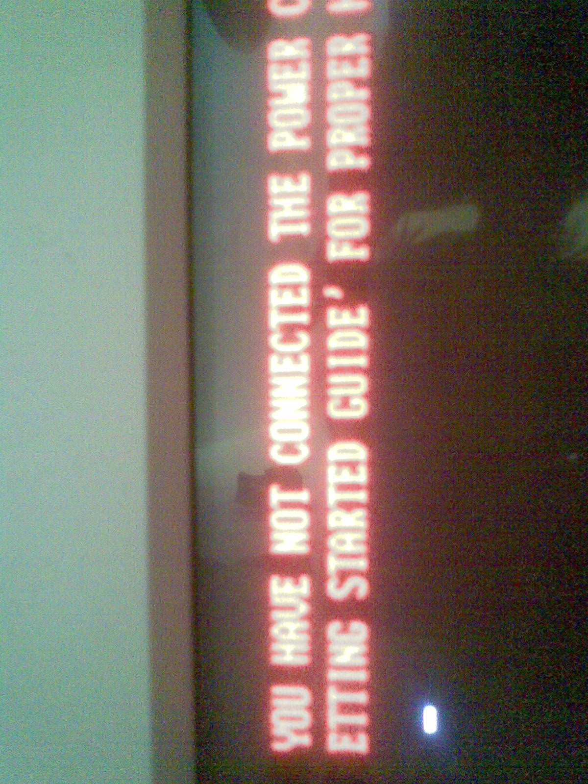 YOU HAVE NOT CONNECTED THE POWER CABLE TO YOUR VIDEO CARD. PLEASE REFER TO THE 'GETTING STARED GUIDE' FOR PROPER HARDWARE INSTALATION.
