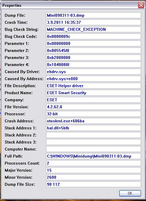 Tady je výpis z BSOD vieweru. poslední