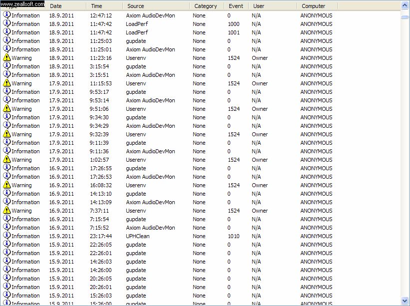 printcreen prohlížeče událostí je prakticky k ničemu, potřebuješ projít obsah těch varování a chyb, a zamyslet se co znamenají.