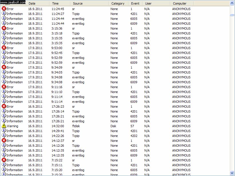 printcreen prohlížeče událostí je prakticky k ničemu, potřebuješ projít obsah těch varování a chyb, a zamyslet se co znamenají.
