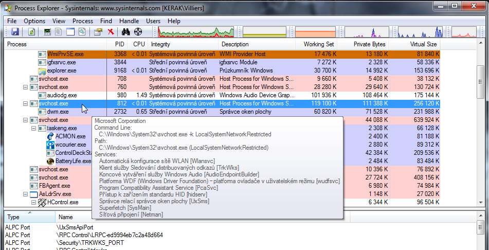 blikalo? stačí kliknout na proces a z menu process vybrat properties.. tak kukni na záložku services…