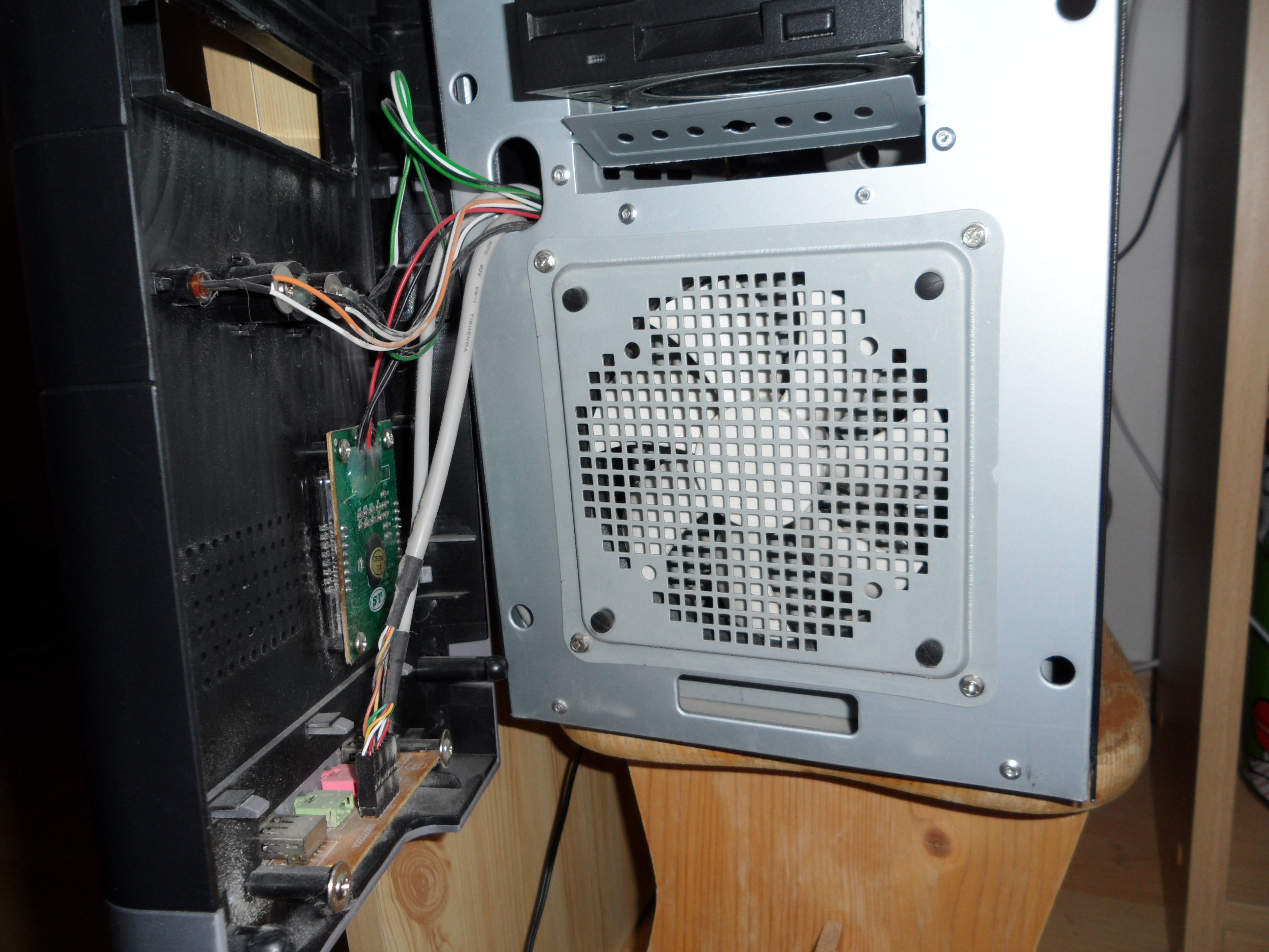 Vsetko ostatne co pises sa toci okolo predneho vetracika. K tomu mozem napisat iba tolko, ze sa osadza z vnutornej strany a skrutky sa upevnia z opacnej (predny kryt musis demontovat). S diskami sa vacsinou uhyba kam sa len da, osobne mam jeden na spodnej pozicii a druhy co najviac navrchu (preto mam dobre teploty HDD aj ked neveriaci Redmarx mi bude stale tvrdit, ze to iba "blbo meria":-)). Problem je, ze ty nemas kam uhnut. Z fotiek vidim, ze mas v case celkom plno. Bud su tie komponenty tak velke, alebo skrinka tak mala. Rozhodne kup novu normalnu (miditower) bednu od normalneho vyrobcu (aspon CM). Potom mozes osadit jeden 120 dopredu a jeden dozadu. CM bedne vacsinou uz zadny fan maju v cene.