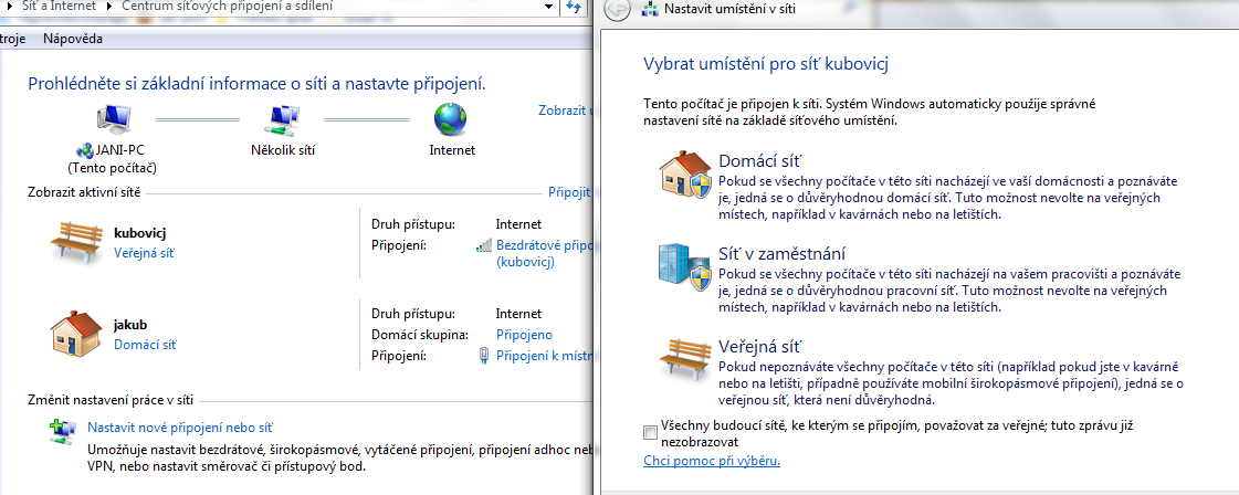 a jeste dotaz,jak mám to bezdr.pripojení, tam si můžu vybrat bud -DOMÁCÍ SIT, SÍT V ZAMESTNÁNÍ A VEREJNA SIT