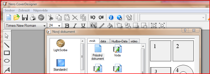Zatím všem děkuji za trpělivost. V Neru- Nový dokument nevidím ikonu s lightscribe Na stránkách www.… nový