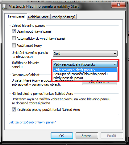 myslis tohle nastaveni? pravym mysitkem na hlavni panel a vlastnosti.. [http://pc.poradna.net/file/…