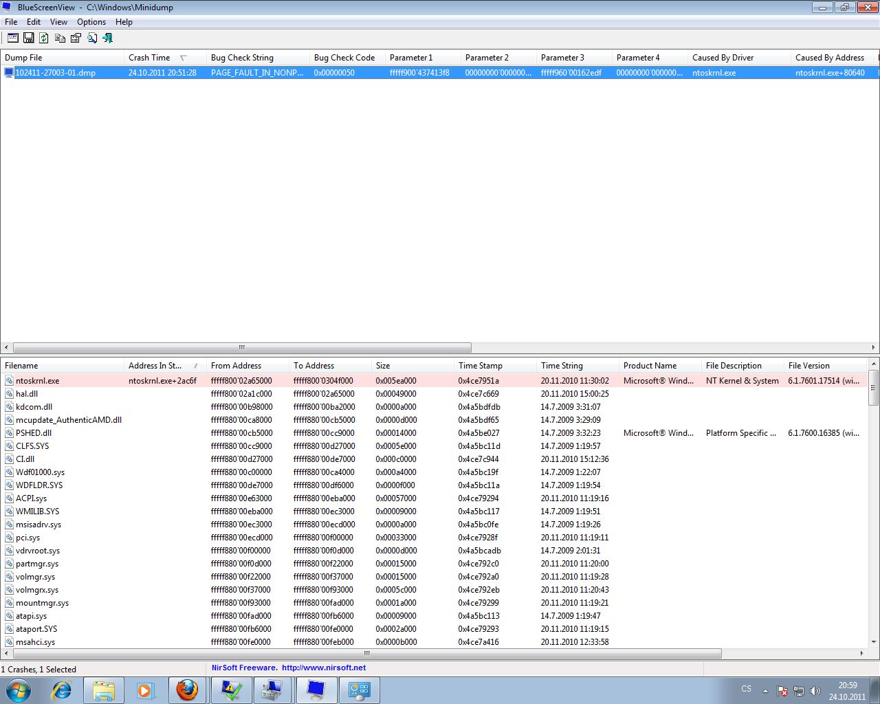 Jaky kod chyby a v jakom .sys alebo .dll nastal. To co si sem napisal je zbytocna informacia, kazdy bluescreen uklada informacie do minidump.