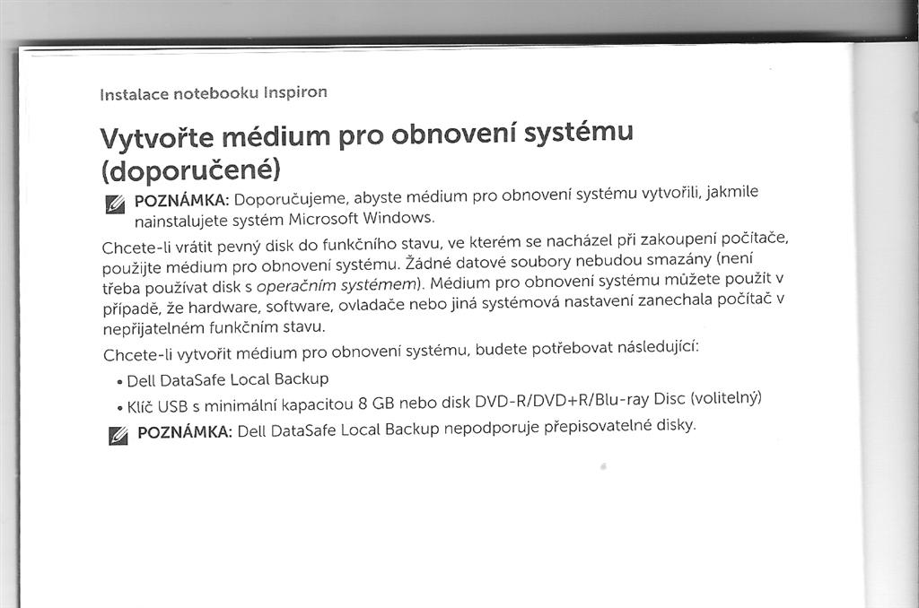 dell jaky? obnova a zaloha je popisana v navode. Vlastne zalohy si mozes robit aj samotnym Windows a…