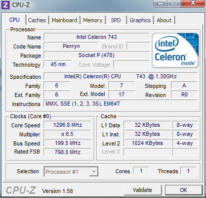 http://ark.intel.com/products/37135/Intel-Celeron- M-Processor-ULV-743-%281M-Cache-1_30-GHz-800-MHz-F SB%29