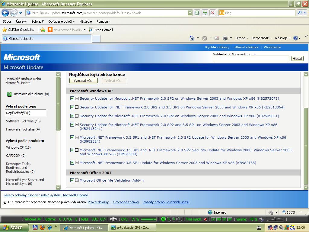 Inac jaky mas v ytch XP servicepack? To tiez moze hrat rolu, tie aktualizacie sa z nejakeho dovodu nenainstaluju dobre, t.j. moze ti nieco v systeme chybat co napr. bolo v servicepacku apod.