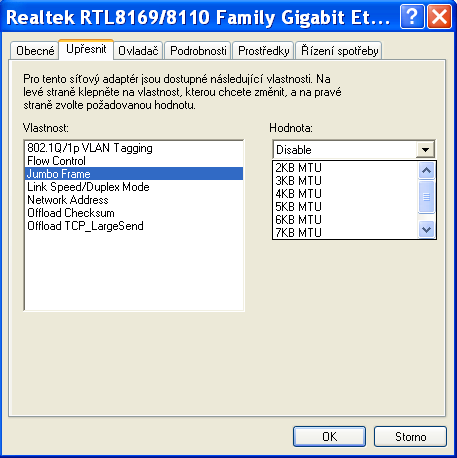 Jumbo frame s tym nemaju nic spolocne (pouzivaju sa len na gigabitovych sietach), MTU nastav na rout… nový