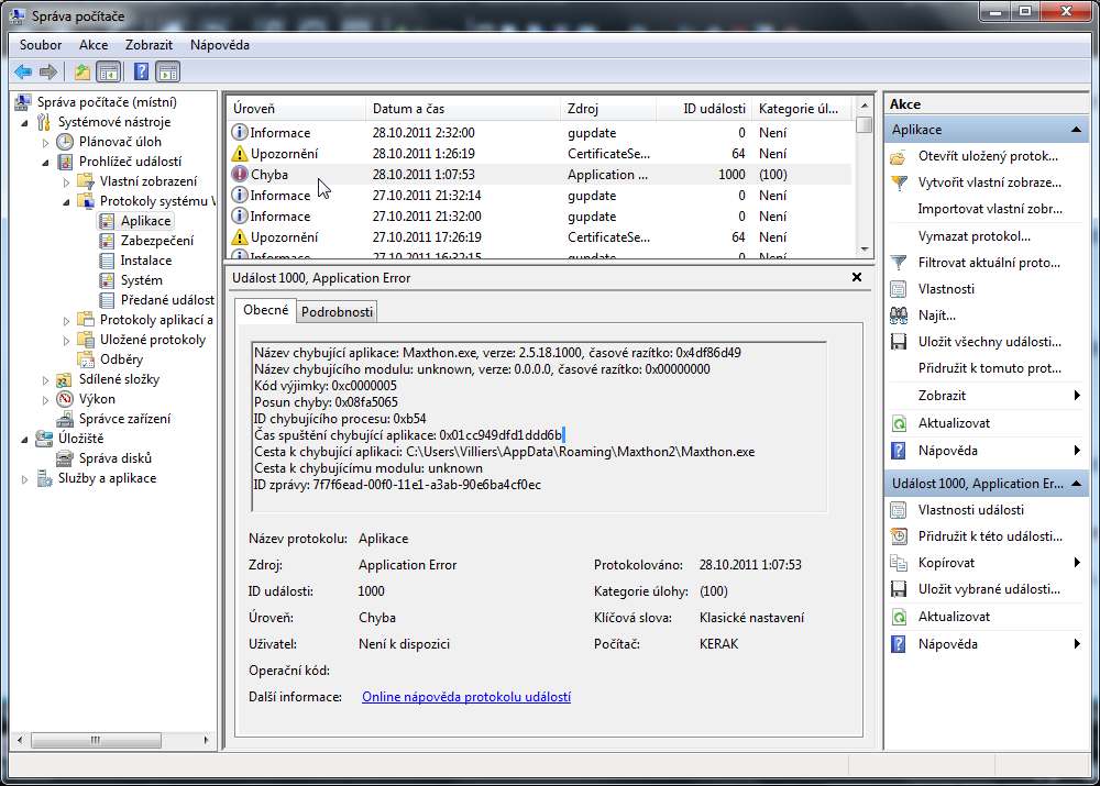 co ti třeba v prohlížeči událostí hlásí za chybu?