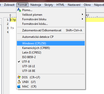 Tak v PSPadu nemám na výběr windows-1250 co teď?