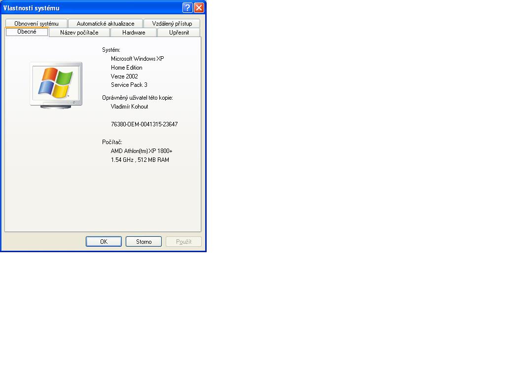 s pc jsem nic nedelal a mam win xp home edition verze 2002 service pack 3 Amd anthlon xp1800+ 1,54GH…