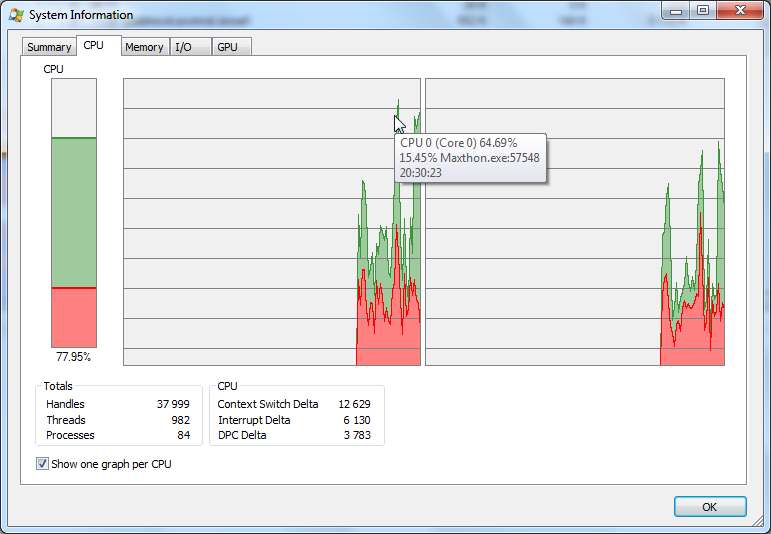 Ked je vytazeny CPU na 100% tak v tom okamziku si mas pozerat v zozname procesov ze ktore procesy vytazuju CPU najviac.