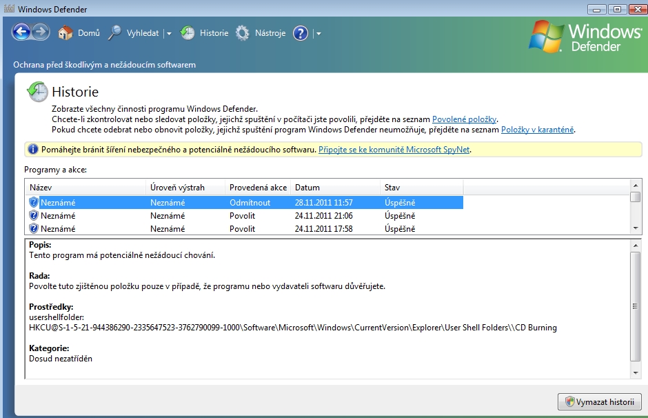 Jenže teĎ nedávno jsem pustila defender, aby zkontroloval PC a cosik se mi tam objevilo, tak jsem dala "odmítnout" (viz 1. obrázek) -> jenže pak začlaly problémy (i když nevím, jestli je to opravdu díky tomu, smazala jsem díky programu REVO ještě nějaké "blbosti"). Teď, když pustím noťas, tak trvá asi 1-2 min, než se objeví logo Windows, pak další min se to načítá a pak se objeví zeleno-modrá obrazovka -> pak další minutu trvá, než najede normální plocha. ALE objeví se mi tam "vystraha" (viz obrázek 2) a nefunguje nic, co by souviselo s OS (např. update, defender - jsou vypnuté a nejdou ani spustit) a internet (když pustím IE, tak se za chvíli sám vypne; mezi ovladači mám i nějaký microsoft 6to4 a u něj vykřičník) ---> jinak funguje všechno - office, NOD, filmy, hudba, hry atd.