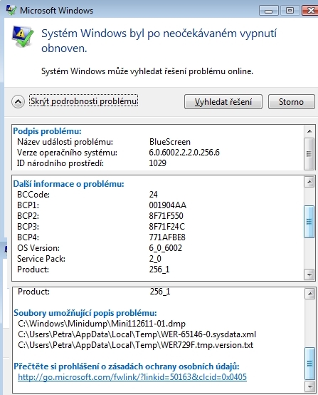 Min týden se mi při vypínání počítače objevila modrá obrazovka s nějakým textem a pak se PC znovu pustil s "obr. 3"