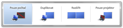 prosím vás kde najdu ve winXP možnost připojit projektoru? Tam kde můžu zvolit duplikovat, rozšířit, pouze PC nebo pouze projektor?