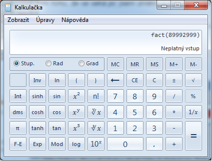 To jsi se moc nepřevedl - Příslušenství - Kalkulačka, faktoriál z 89992999, až se to bude ptát - rozhodně to ukončit nechceš.