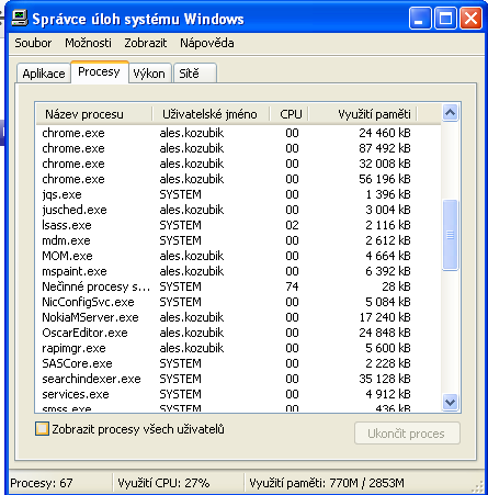 V PC mi skáčou nečinné procesy, občas vytěžují procesor i na 100%.