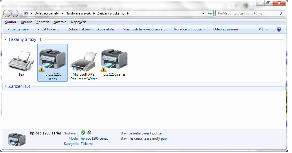 prosím o radu, nainstaloval jsme si multifunk. zařízení HP PSC1215 all in one na NTB s OS W7, ale nezobrazuje se mi když zapnu tiskárnu v /Počítač/ jako další zařízení