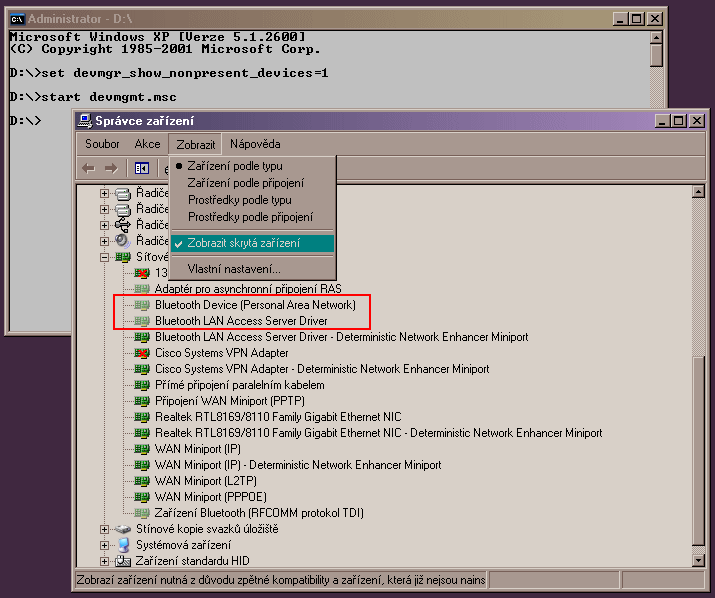 V tom příkazovém řádku jsem to dal a vyběhl ten správce zařízení ale tam nebyly skryté položky , jsou tam jen skryté soubory když dám zobrazit a nepochopil jsem co s nimi jako mám udělat...