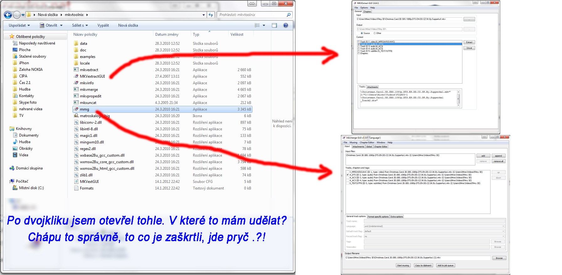 V mkv extract si zaskrtni video a cesky zvuk a vyextrahuj si ich (vzniknu nejake extra subory), a po…