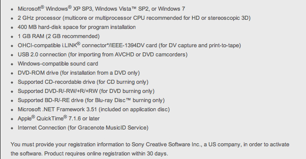 Sony VEGAS Pro 11 Požadavky na systém