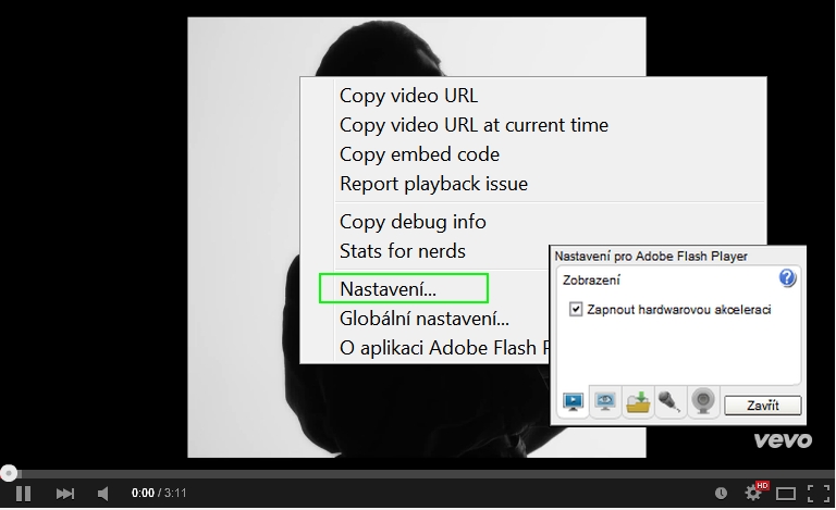 Pravý klik na video a "Enable hardware acceleration" - odškrtnúť/zrušiť...