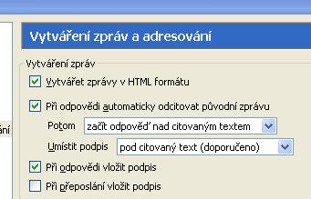 Nástroje - Nastavení účtu - Vytváření zpráv a adresování , tam by měl být zaškrtnutý příznak "Vytvář…