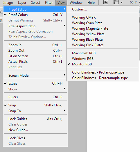 Creates a soft proof of colors in an RGB document using your current monitor color space as the proof profile space. This option assumes that the simulated device will display your document without using color management. This option is unavailable for Lab and CMYK documents.