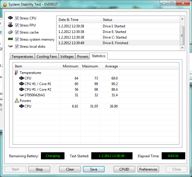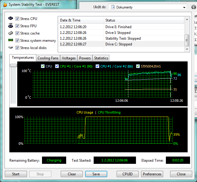 Tady jsem dělal test stability když se mi to stalo poprvé.